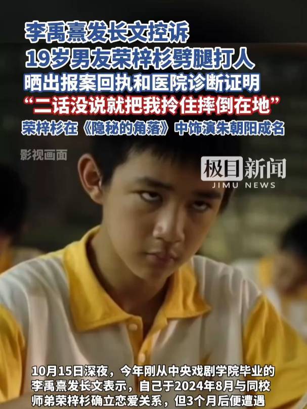 15日深夜,多条消息显示今年刚从中央戏剧学院毕业的李禹熹发长文表示,自己月与童星、同校师弟荣梓杉确立恋爱关系,𱢿个月后便遭遇对方不接电话、频繁失联的冷暴力。